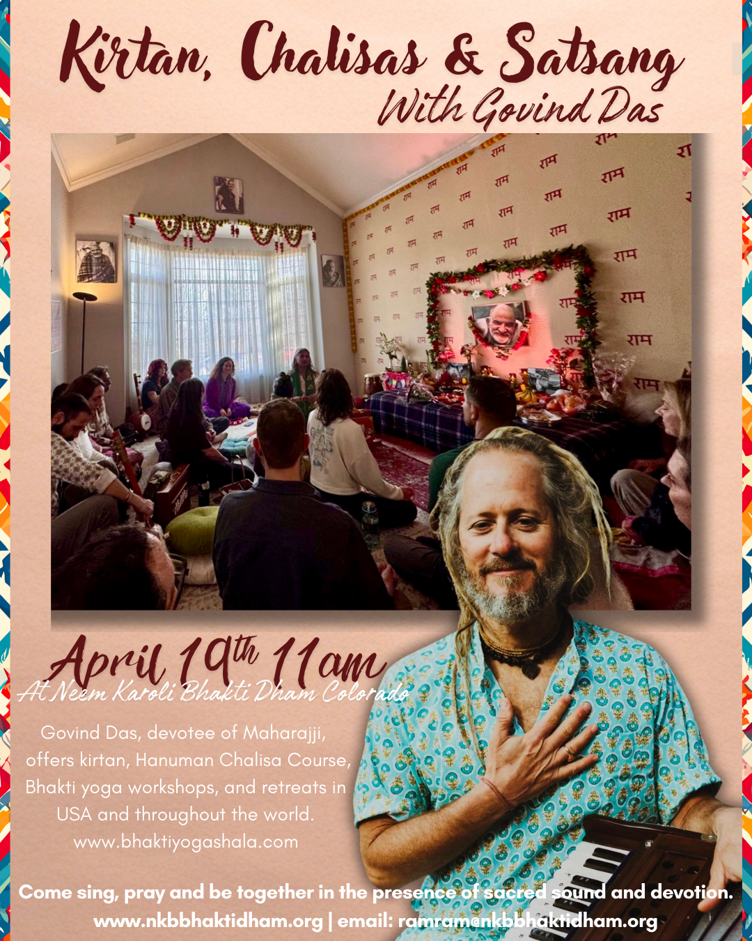 On April 19th, we welcome Govind Das at Bhakti Dham for morning of Kirtan, Chalisas and Satsang